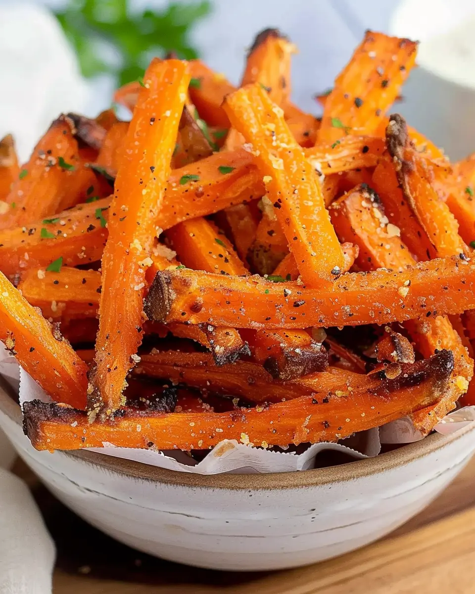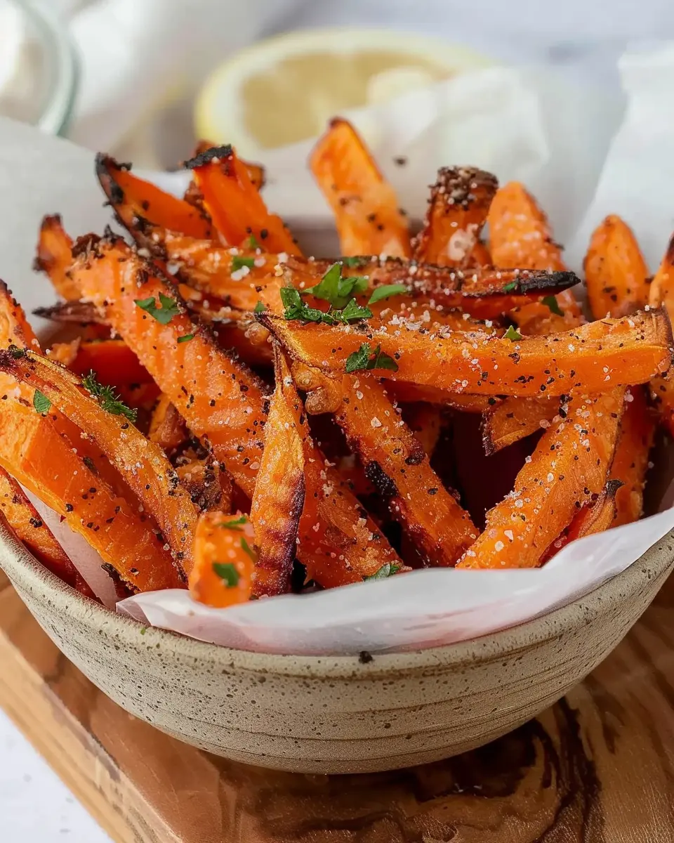 For those who prefer a balance of flavors, sweet and savory carrot fries hit the spot. Think of the cozy flavors of fall: