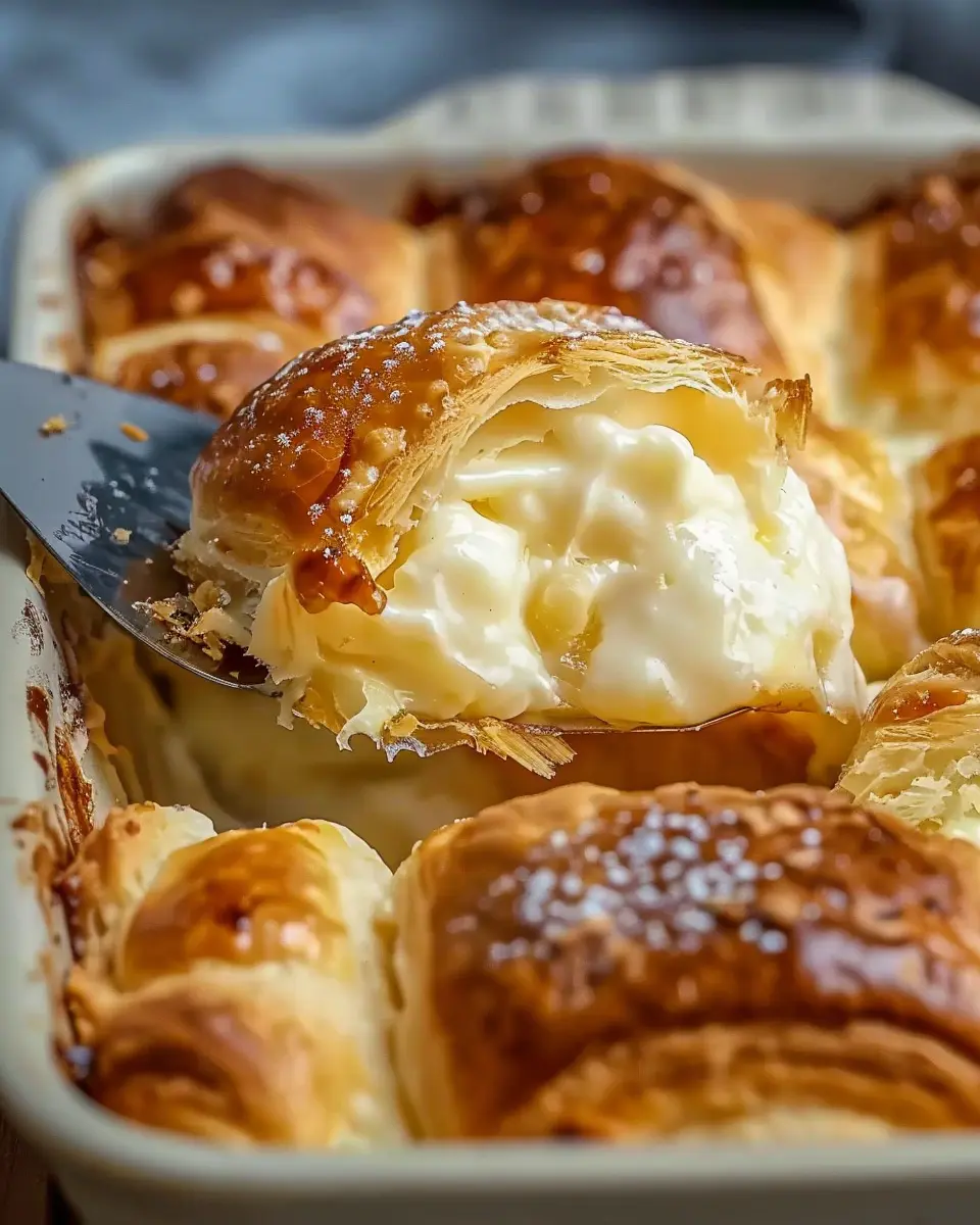 Using crescent roll dough not only provides a sweet and buttery aroma but also brings a flaky texture that pairs beautifully with the creamy filling.
