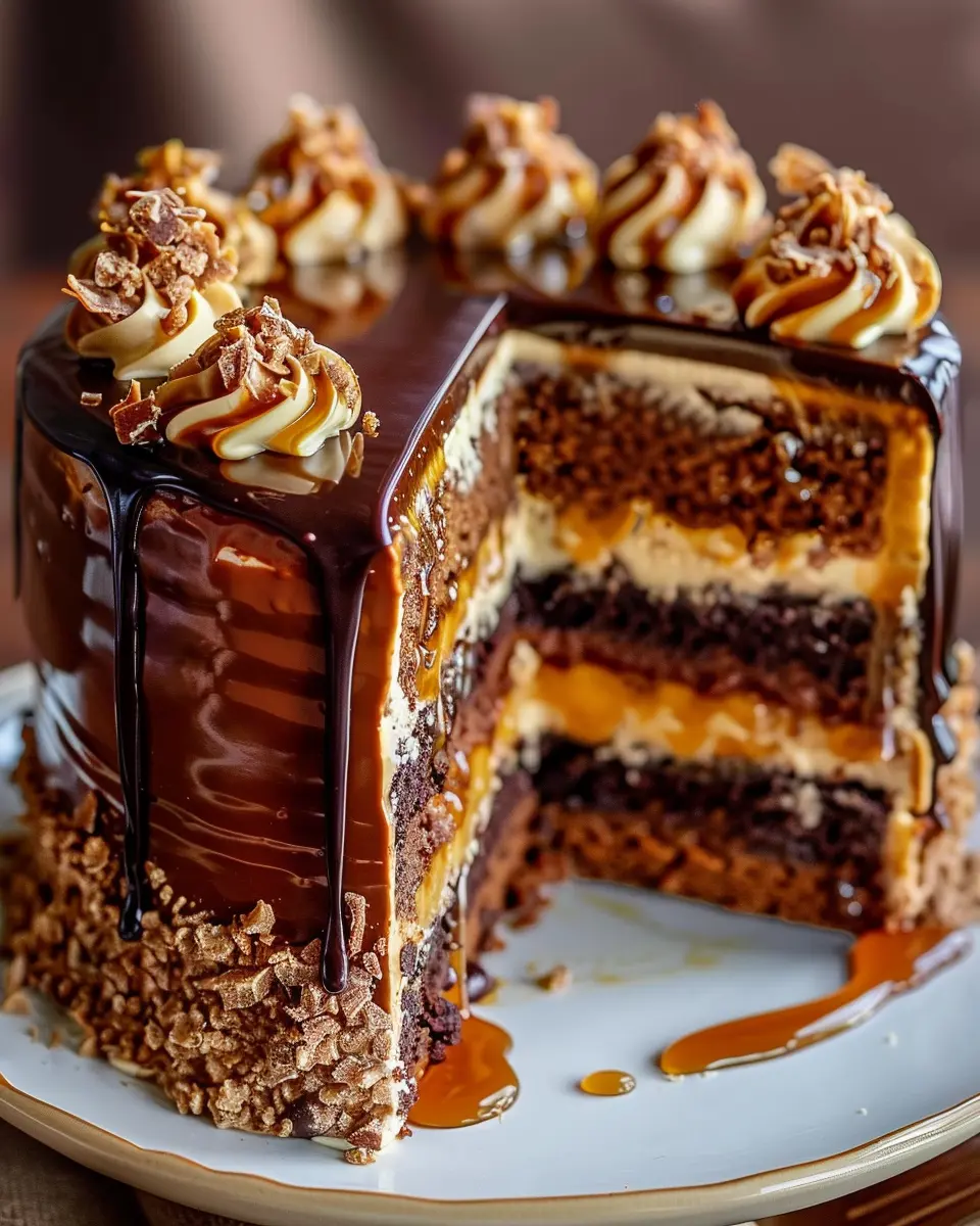 PrintChocolate Caramel Toffee Crunch Cake: The Best Indulgent Treat