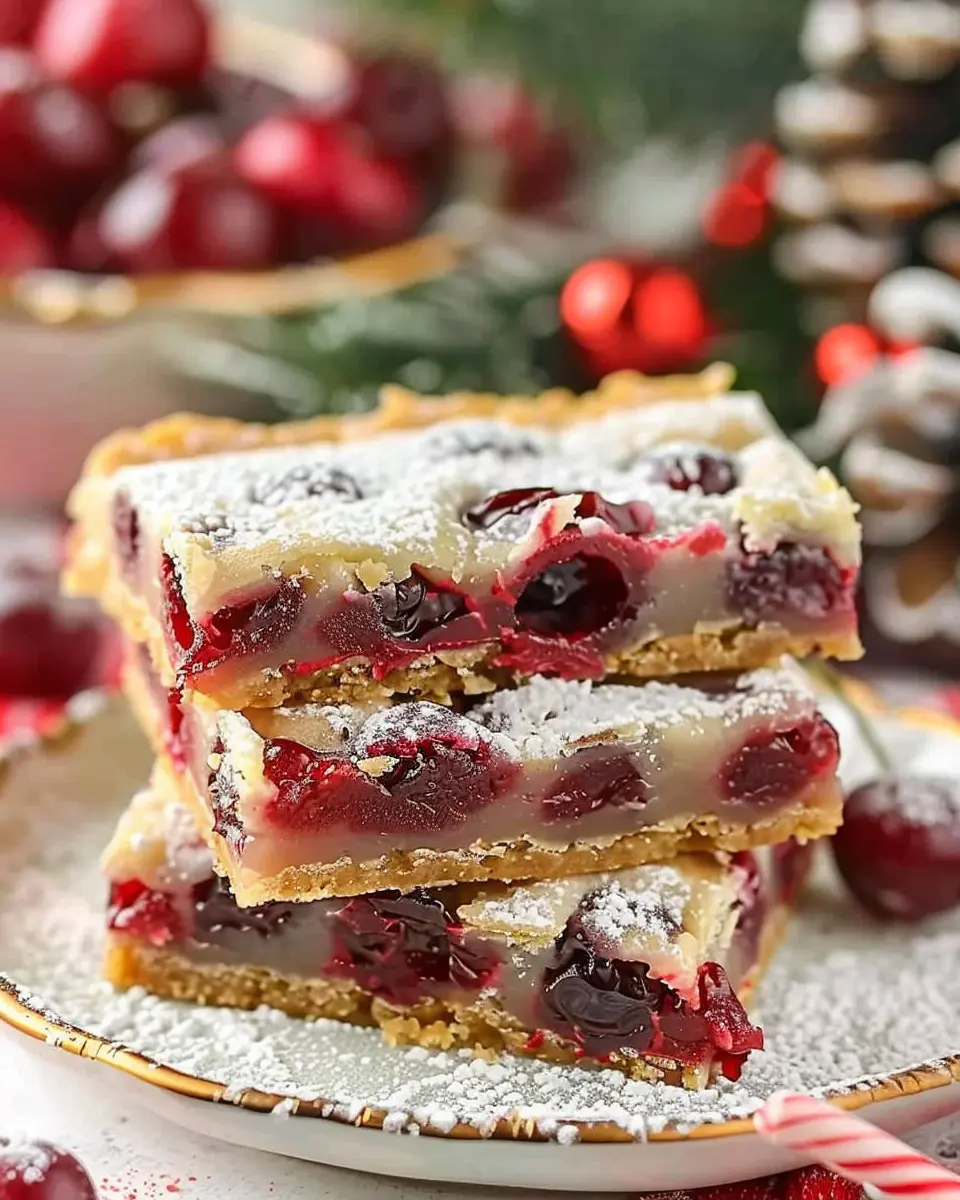 A delightful holiday treat that combines sweet cherry flavors with a buttery bar base, perfect for Christmas celebrations.