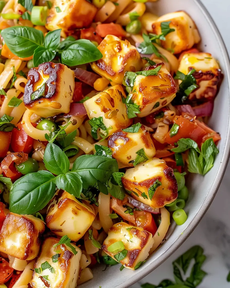 PrintColorful Halloumi Pasta Salad: Easy, Fresh, and Delightfully Tasty