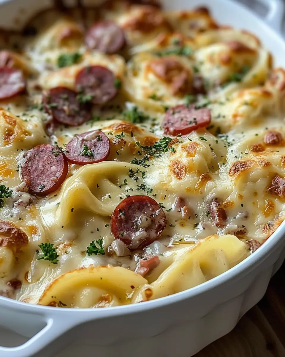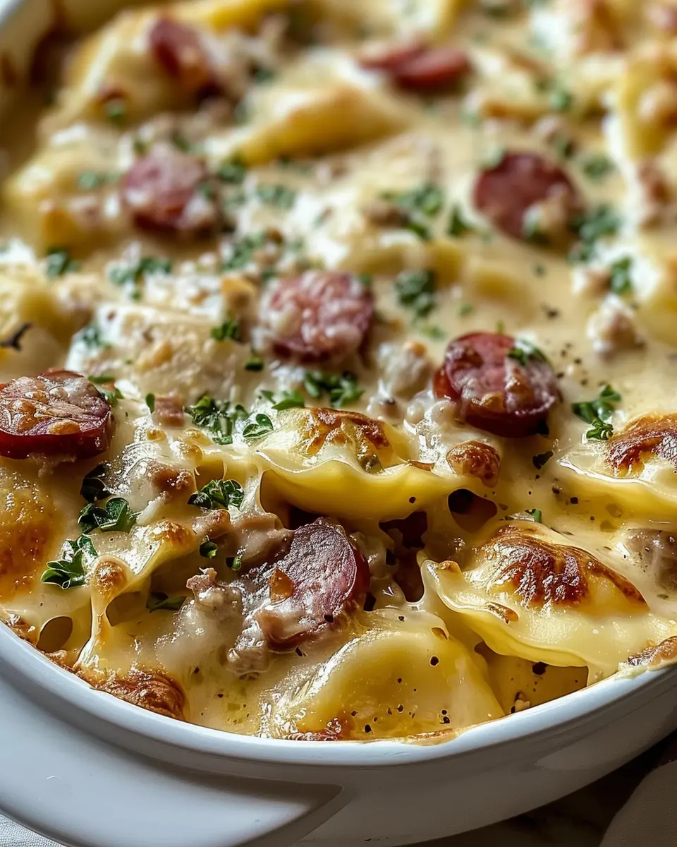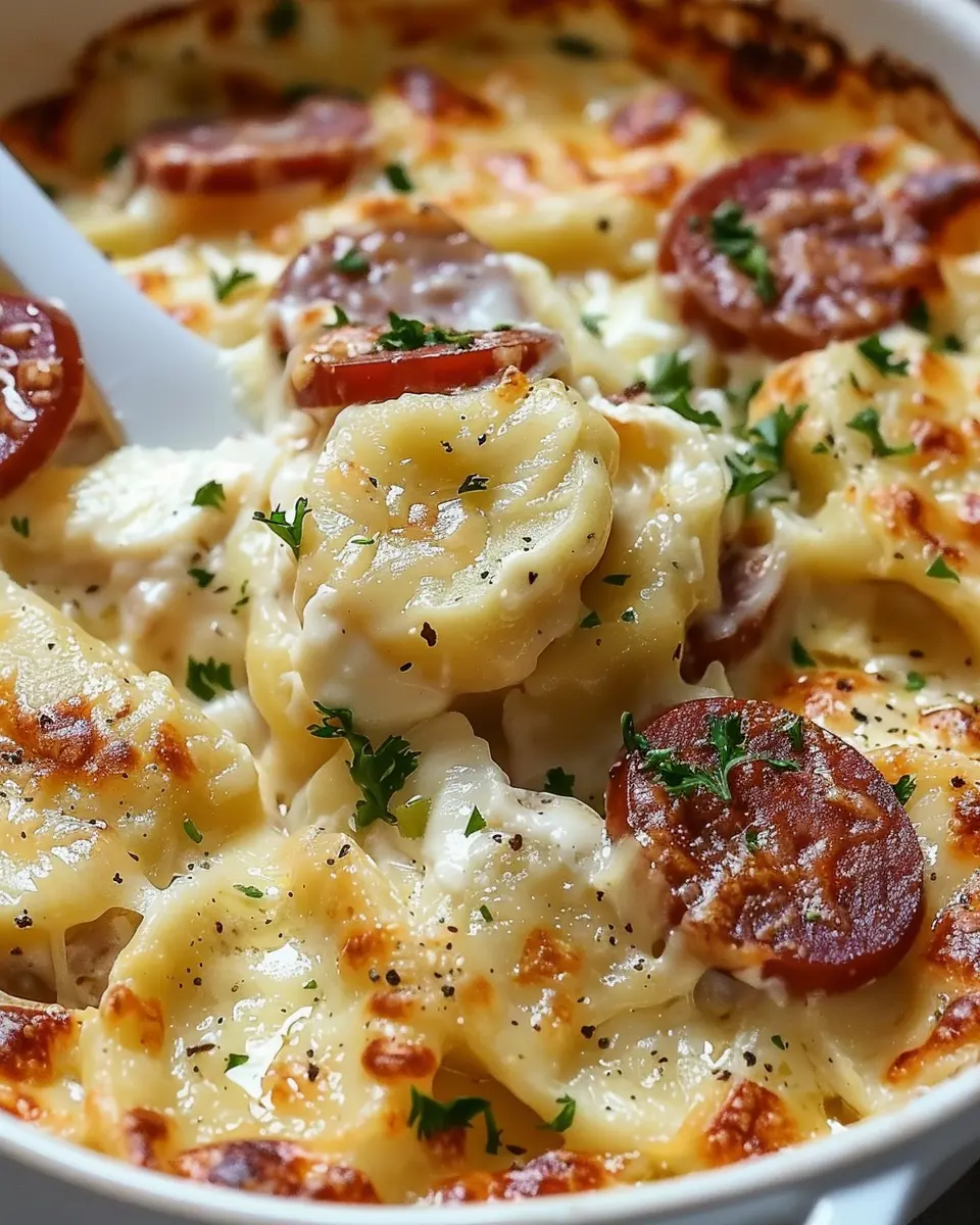 PrintCreamy Cheesy Crockpot Pierogi: Indulgent Beef Kielbasa Casserole