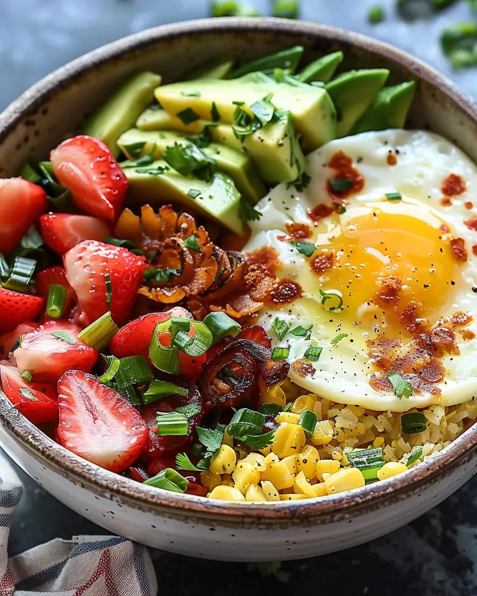 No breakfast bowl is complete without a touch of freshness! Layer on some colorful veggies like spinach, diced tomatoes, or sautéed bell peppers for crunch and flavor. A few slices of avocado will add creaminess and healthy fats too. If you like a little kick, consider a sprinkle of chili flakes or chopped cilantro on top.