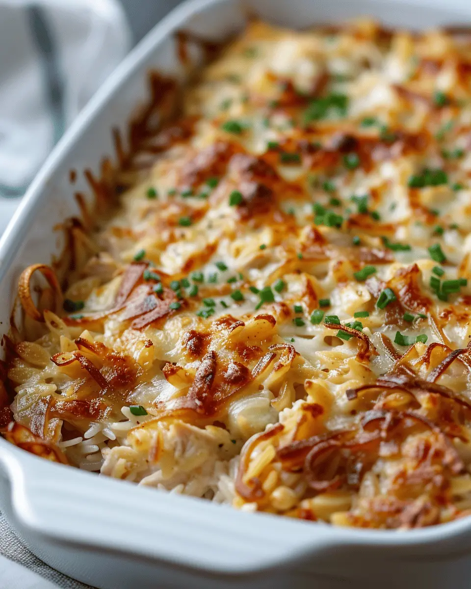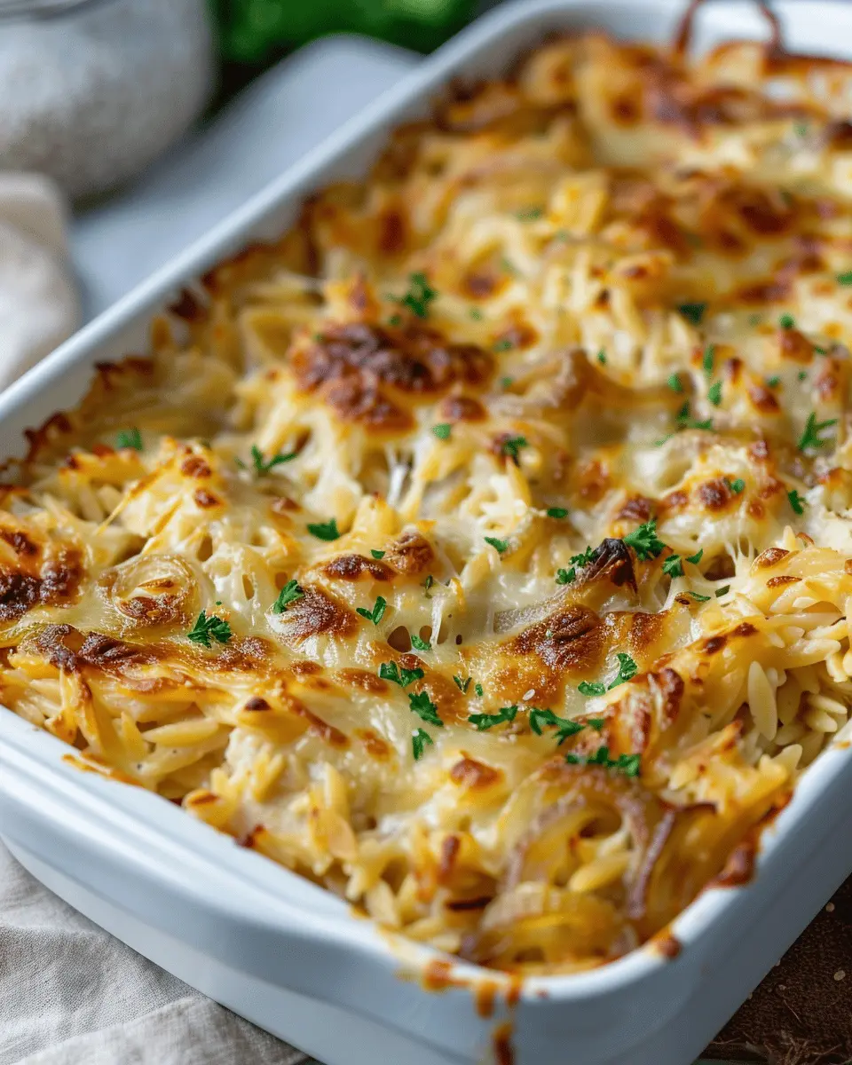 PrintFrench Onion Chicken Orzo Casserole: Easy Comfort Food Delight