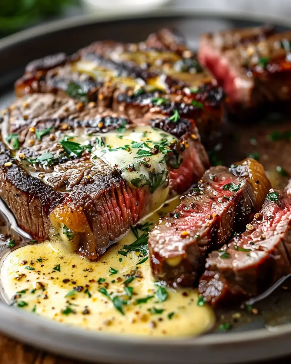 Now that everything is ready, it’s time to plate! Slice your beautifully cooked steak and arrange it on a serving plate. Drizzle that irresistible garlic butter sauce generously over the steak. Sprinkle chopped parsley for a pop of color and freshness.