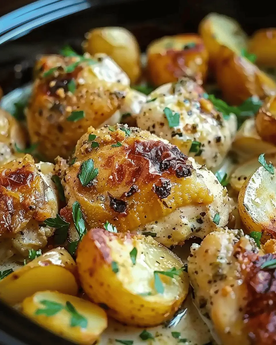 Here’s what makes the Garlic Parmesan Crockpot Chicken and Potatoes recipe special: