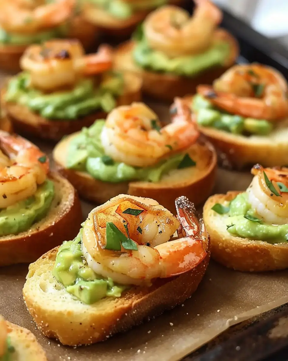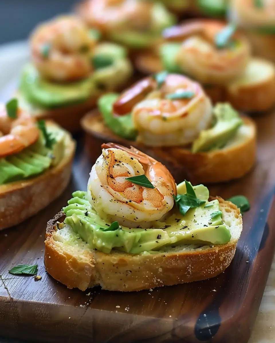 PrintGarlic Shrimp Crostini: A Delicious Avocado Twist for Parties