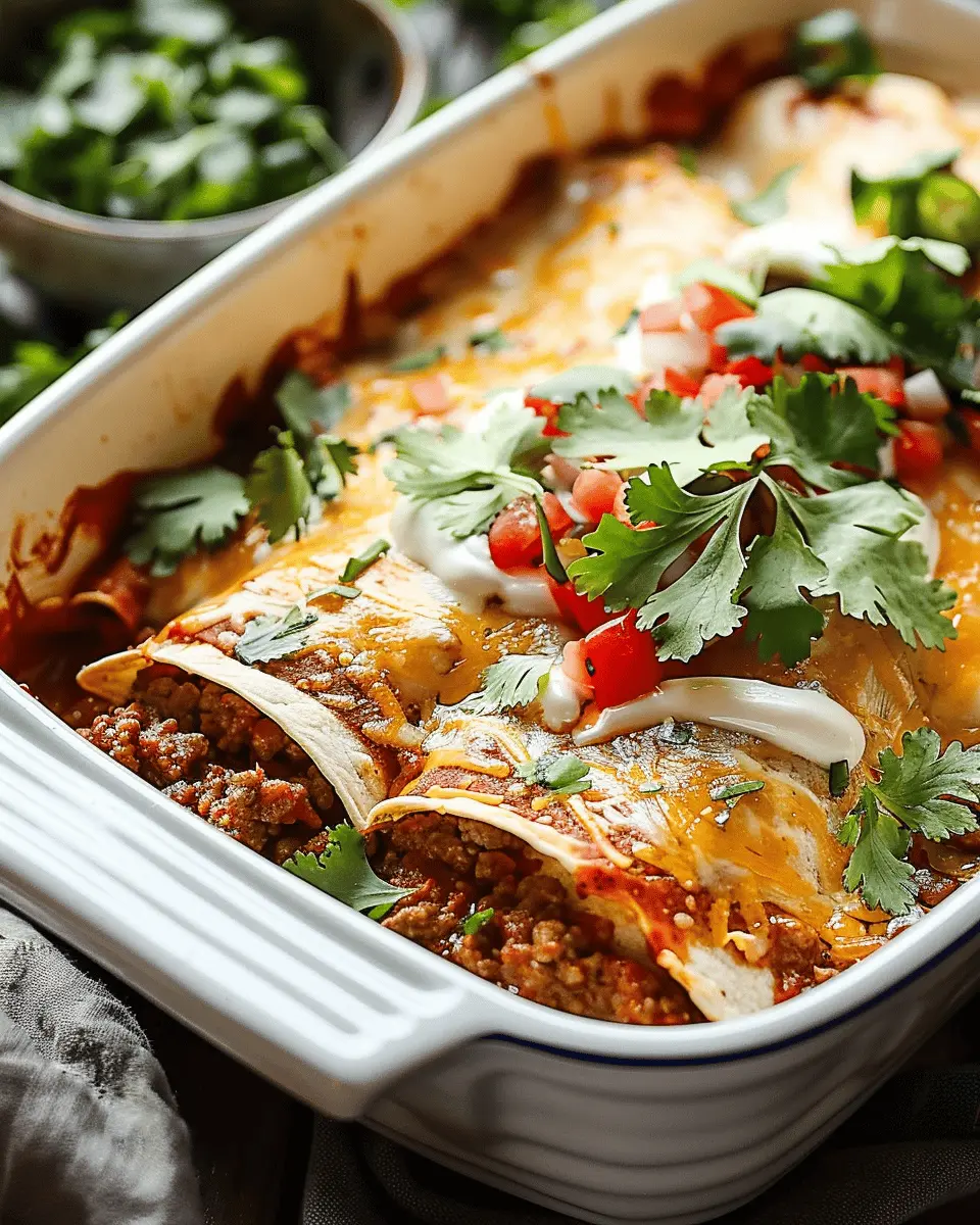 Ground beef enchiladas are a must-try for busy young professionals. Not only are they a delicious comfort food, but they also come together quickly, making them perfect for hectic weeknights. With a few simple ingredients, you can create a satisfying meal that ticks all the boxes for flavor and convenience. Plus, they are easy to customize—add your favorite toppings or swap in healthier options to suit your tastes. Embrace the ease and joy of cooking with this dish, and you’ll find that savoring a homemade meal is a rewarding experience. Ready to get cooking?