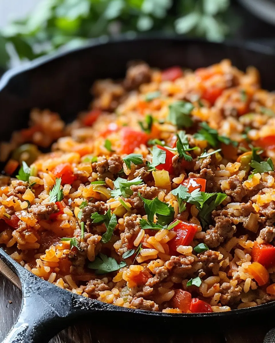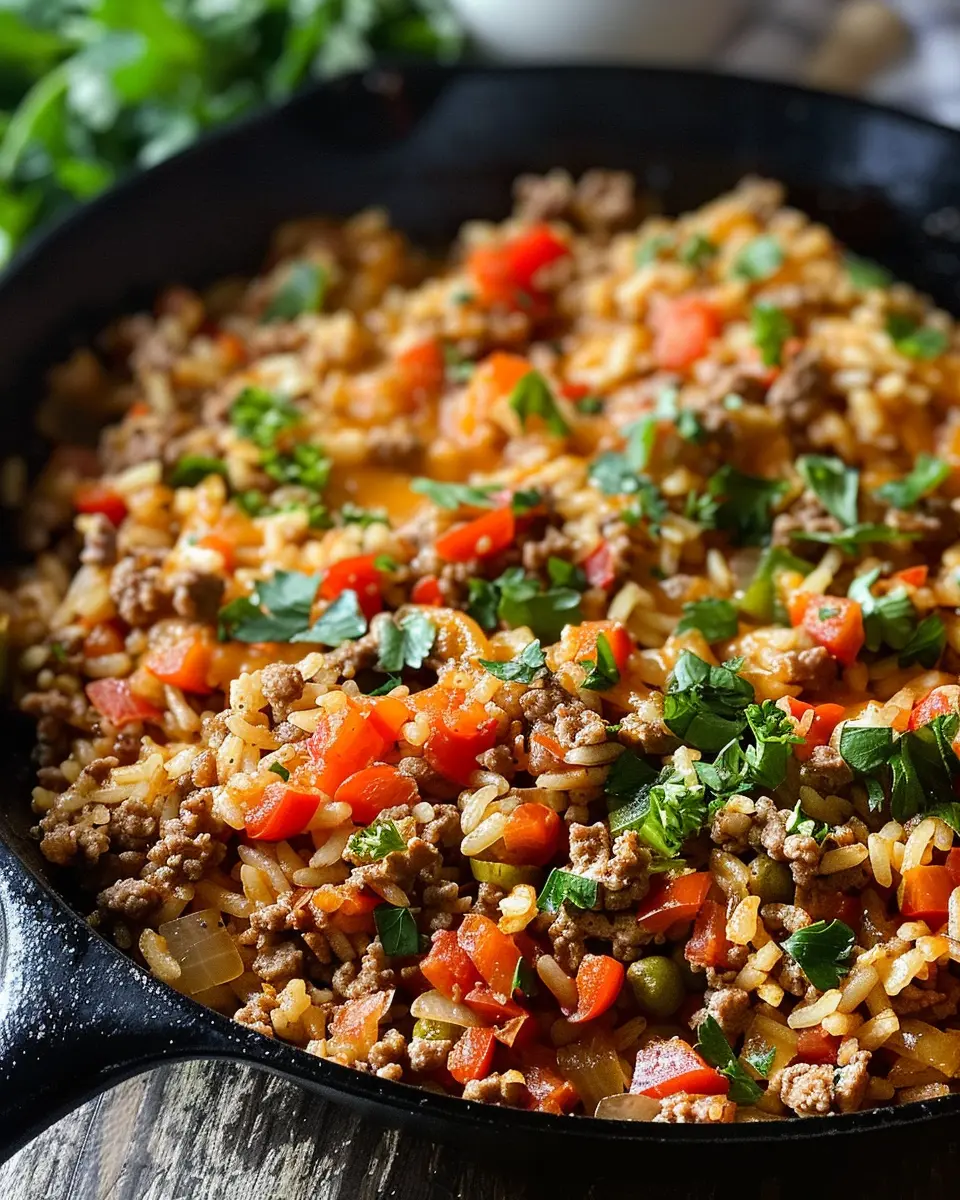 A delicious and easy recipe for a ground turkey rice skillet, perfect for home cooks looking for a one-pan meal.
