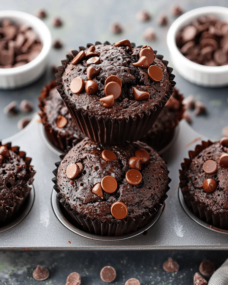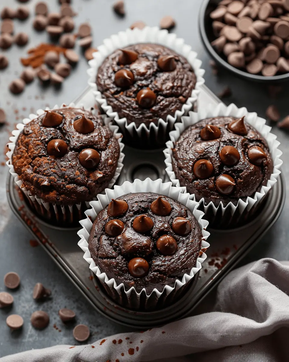 Indulge in these healthy and moist chocolate zucchini muffins, perfect for guilt-free snacking.