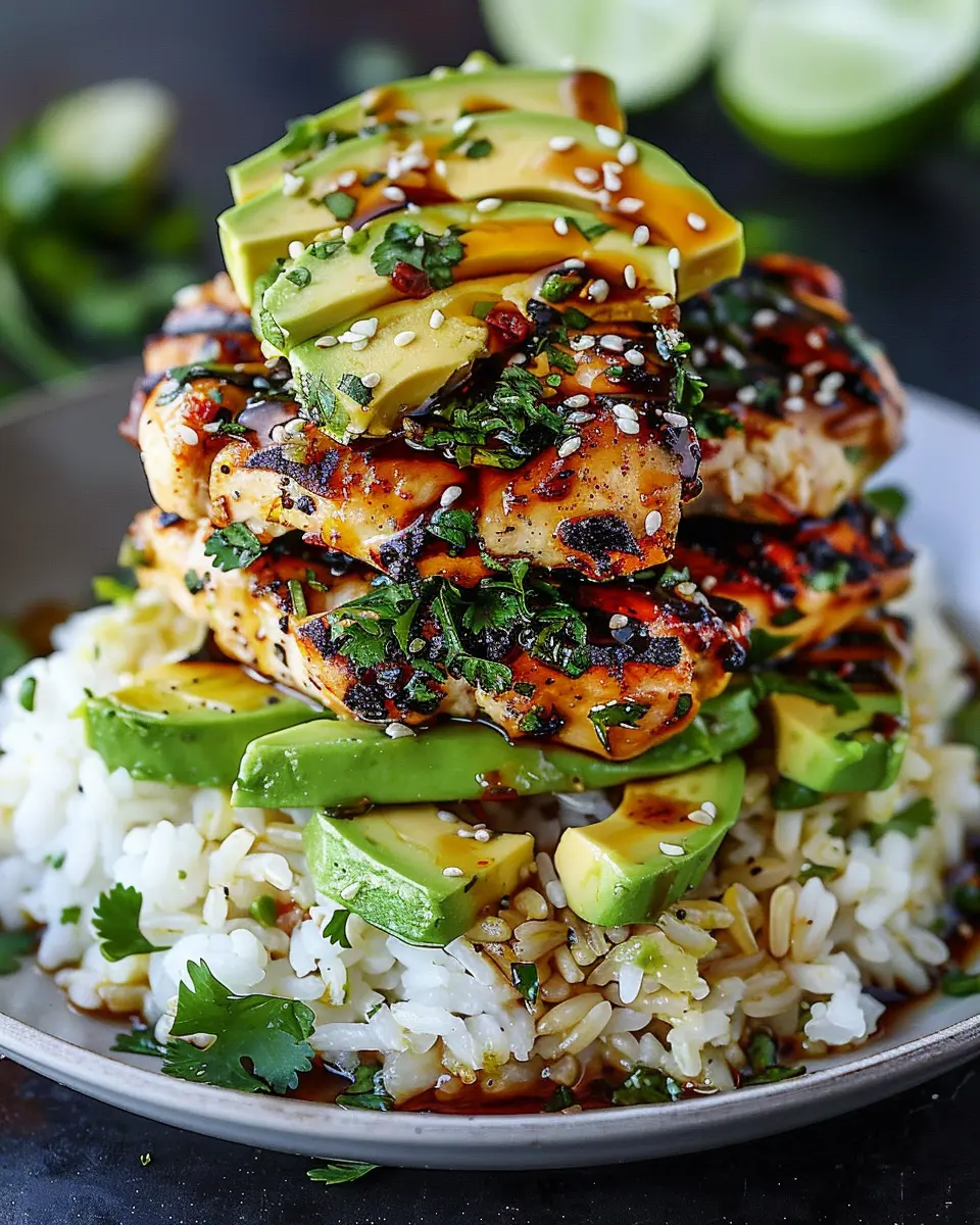 Introduction to Honey Lime Chicken & Avocado Rice Stack