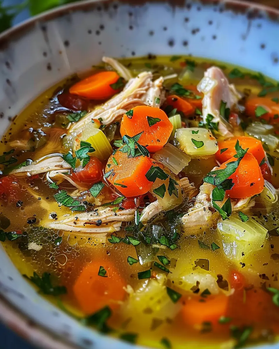 Packed with fresh ingredients, this soup is filled with vibrant vegetables, lean chicken, and aromatic herbs that can boost your health. A study from the Harvard T.H. Chan School of Public Health suggests that diets rich in vegetables and lean proteins can substantially improve mood and overall well-being. So why not indulge in a bowl of this rich, comforting soup that supports both your physical health and mental clarity?