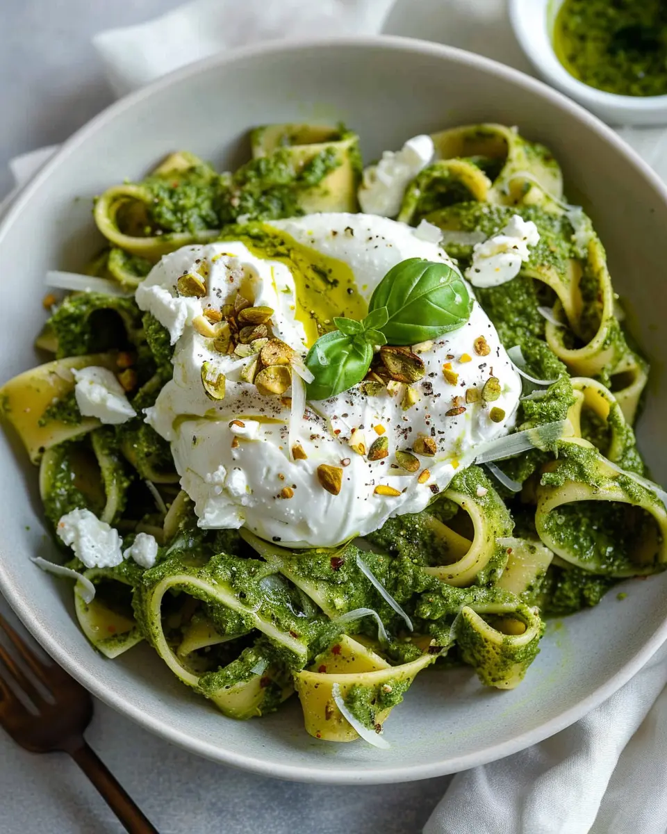Pistachio Pesto Pasta is not just a dish; it’s an experience that brings vibrant flavors to your table. It’s quick to prepare, making it perfect for busy days, yet fresh enough to impress guests. The creamy burrata complements the nutty richness of the pesto, creating a delightful harmony that tantalizes your taste buds. Plus, this recipe is packed with nutrients, offering a boost to your weeknight meals.