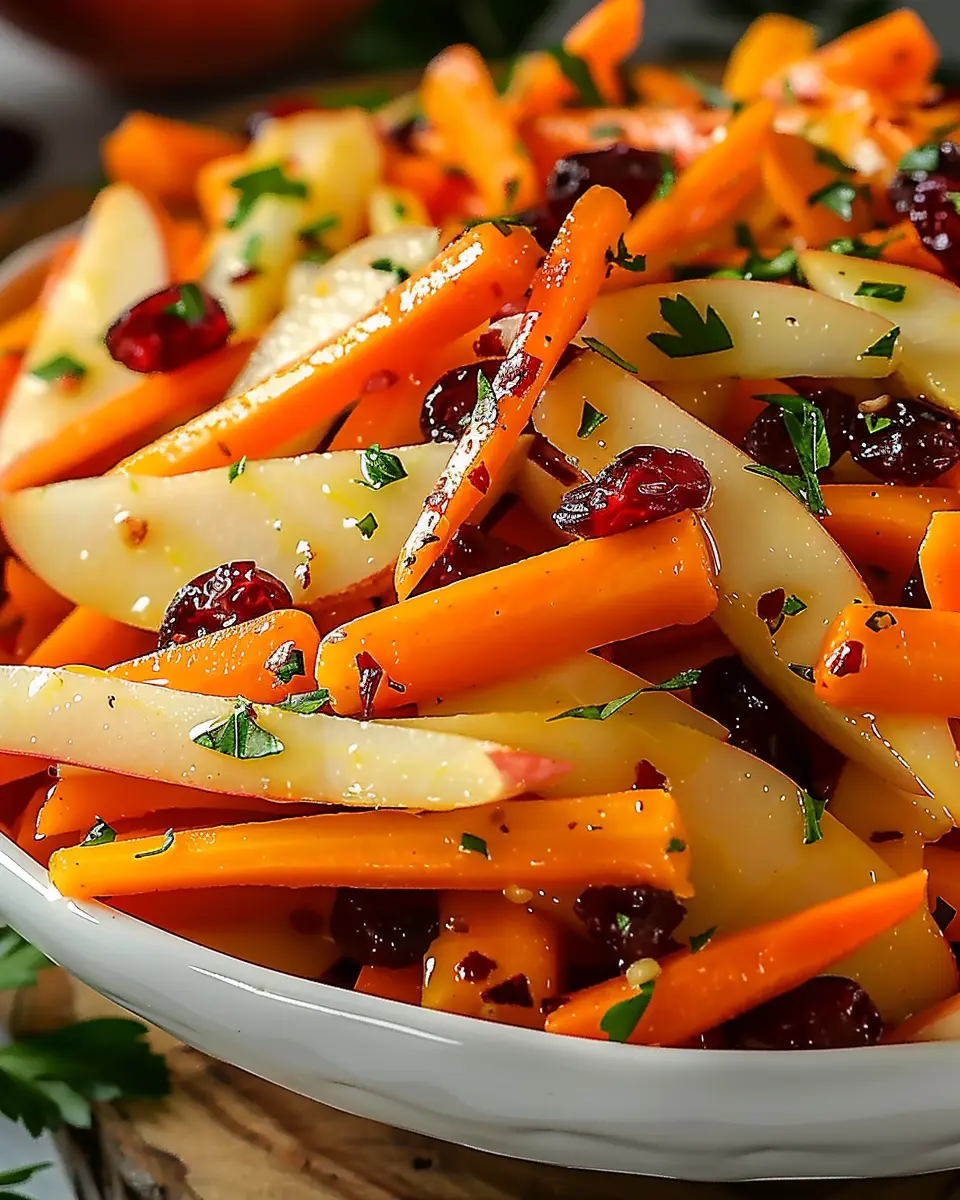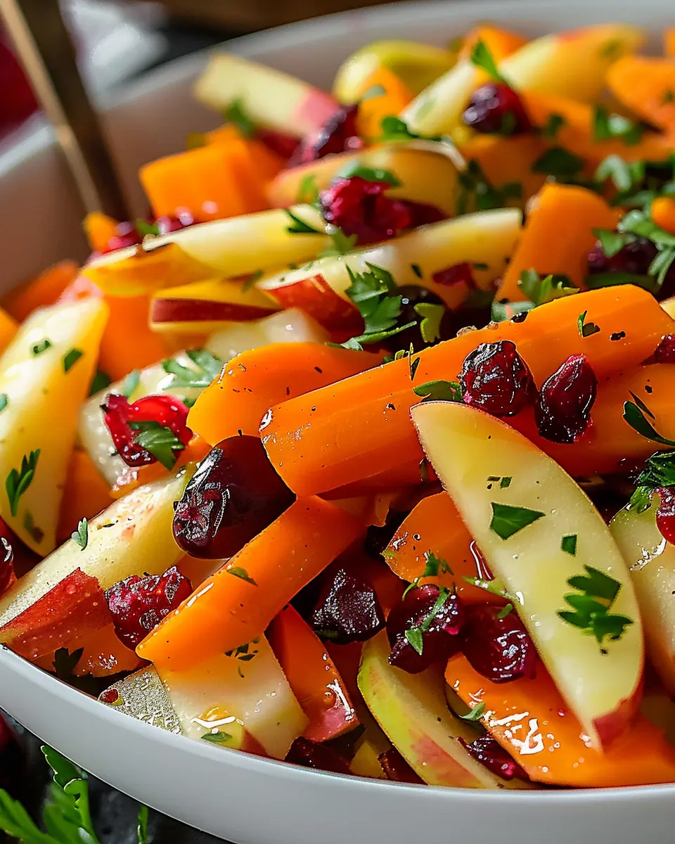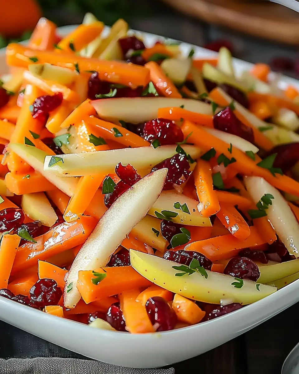 A light and vibrant salad that combines the sweetness of apples, tartness of cranberries, and crunch of carrots.