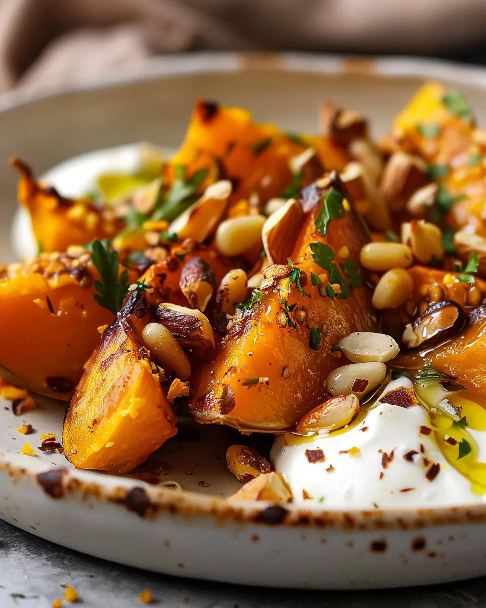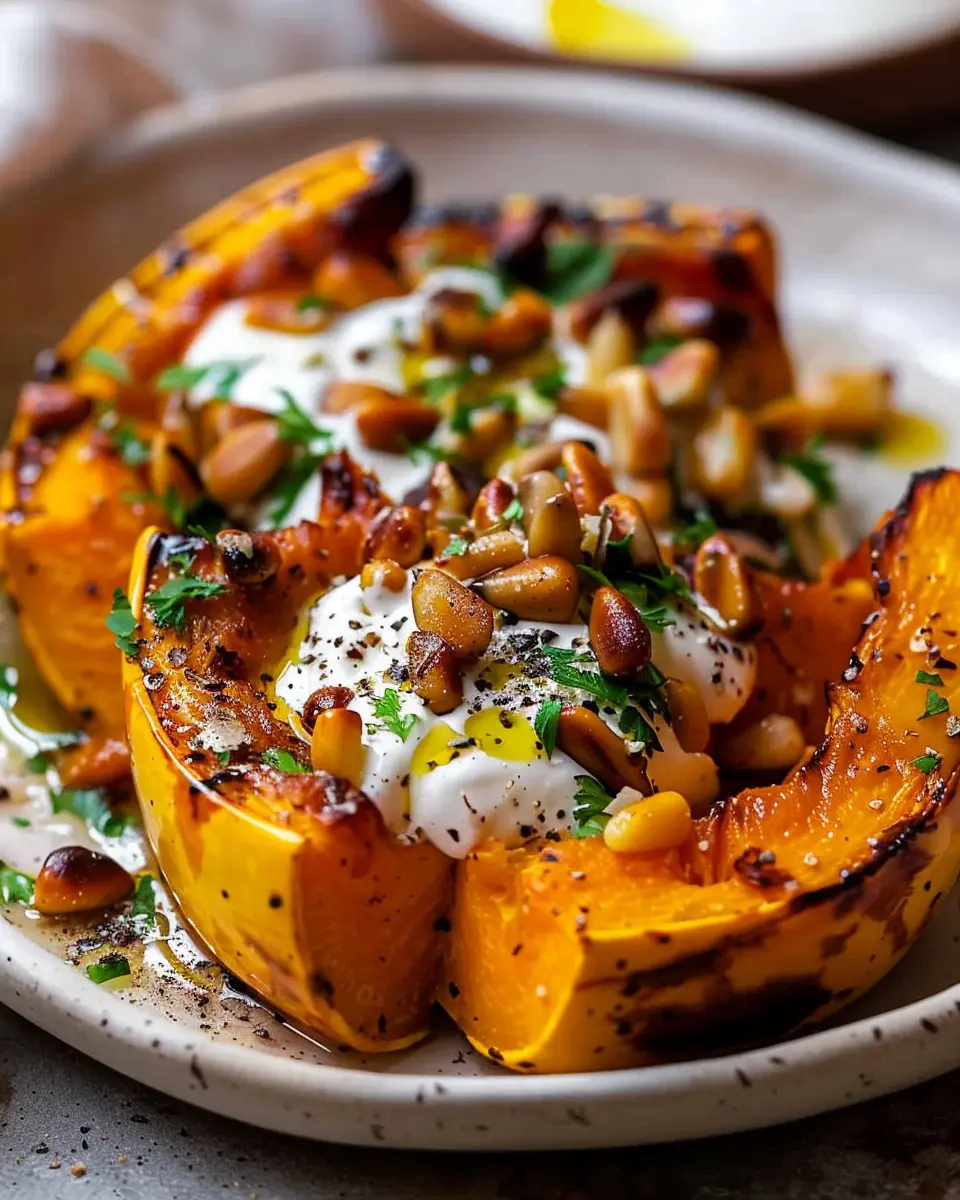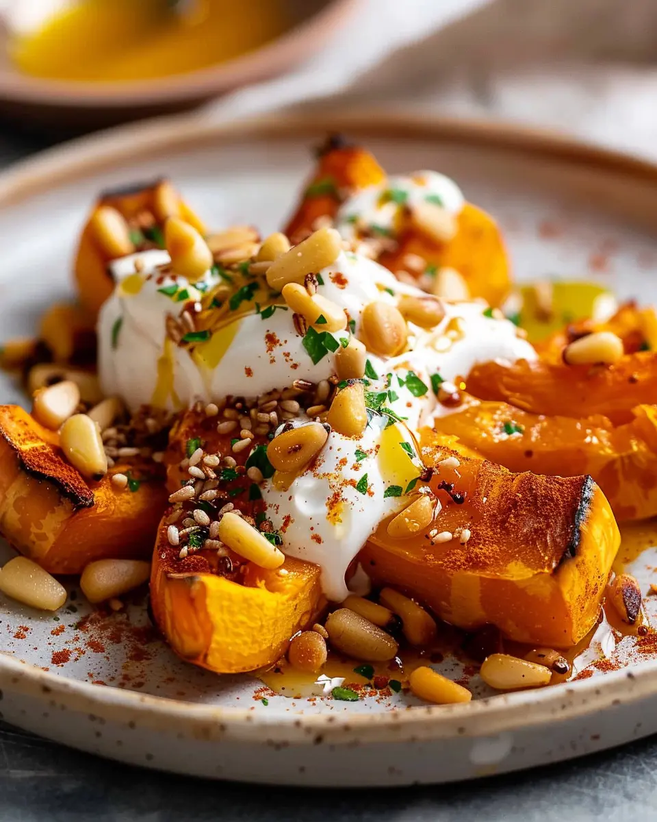PrintRoasted Pumpkin with Lemon Yogurt Sauce and Pine Nuts: A Nutritious Delight