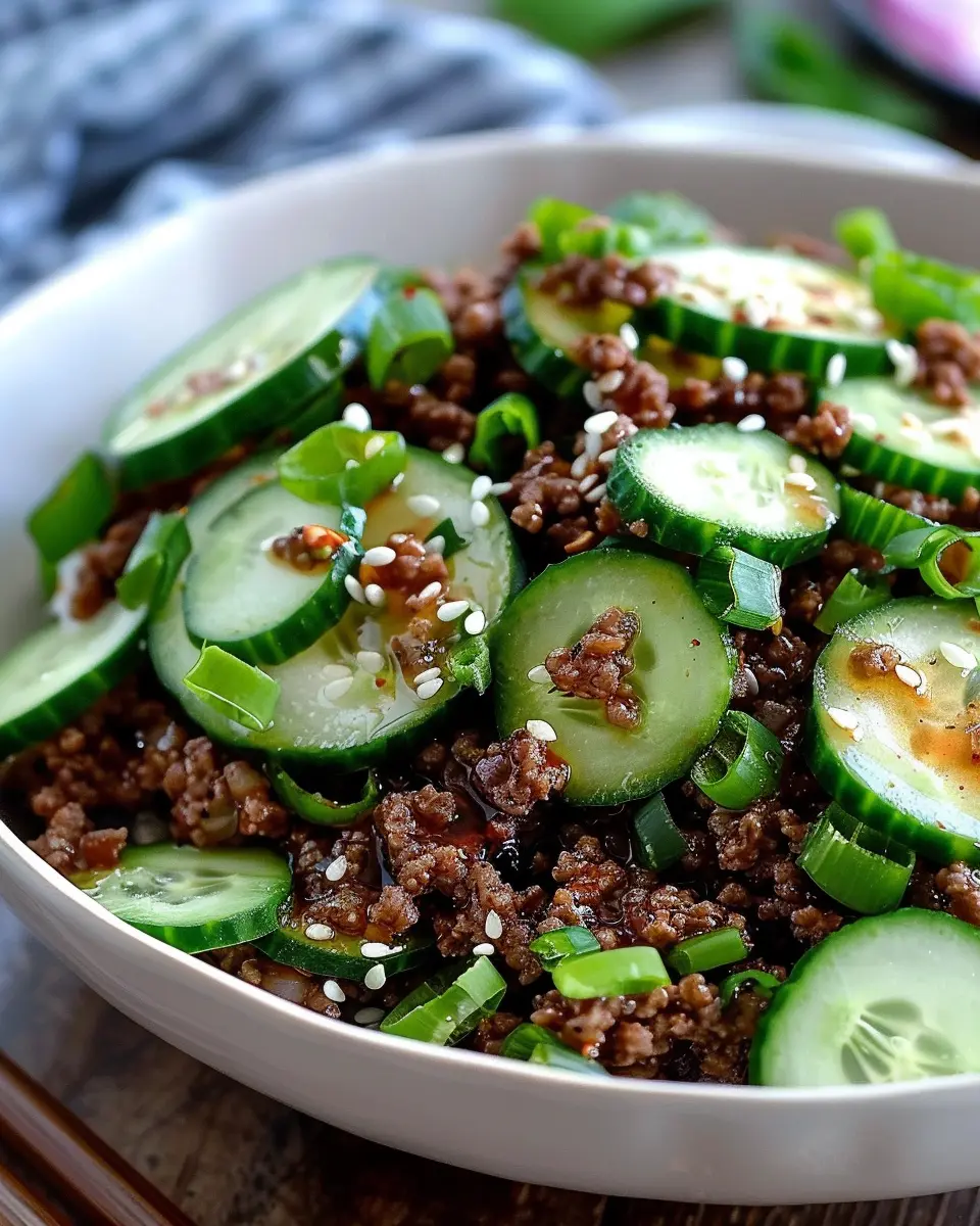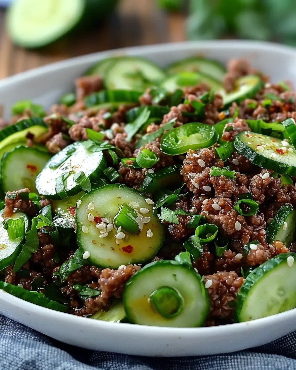 The ingredients are not only accessible but also packed with nutrients. Ground beef is rich in protein and essential vitamins, while the cucumber salad adds a fresh crunch and hydration—perfect for balancing out the heat of the dish. According to the USDA, just 3.5 ounces of ground beef can provide over 25 grams of protein, making this meal an excellent choice for those looking to maintain their energy levels throughout the day.