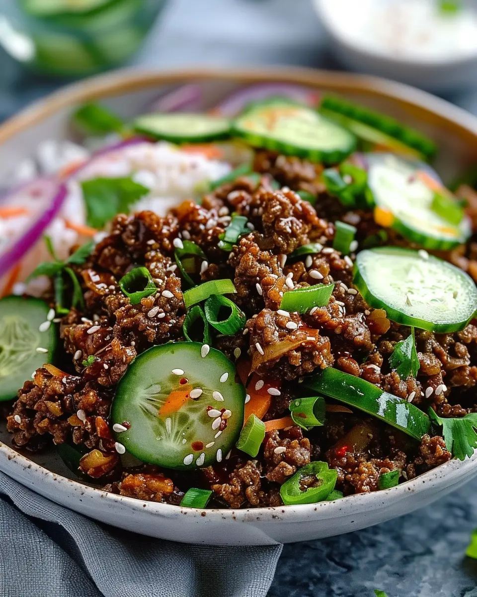To complement the bold flavors of your Spicy Korean Ground Beef, pair it with refreshing sides. A simple cucumber salad balances the heat beautifully. Add pickled vegetables for an extra zing, or try a side of Korean kimchi for that authentic touch. Other great accompaniments include:
