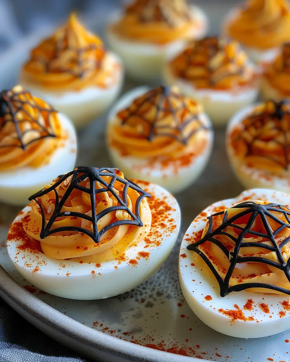 Imagine a gathering filled with laughter and spookiness, where the food matches the theme of the night. These spooky spiderweb deviled eggs do just that, adding an exciting flair to your Halloween spread. Not only are they fun to look at, but they also pack a punch in flavor—you’ll want to make them every year!