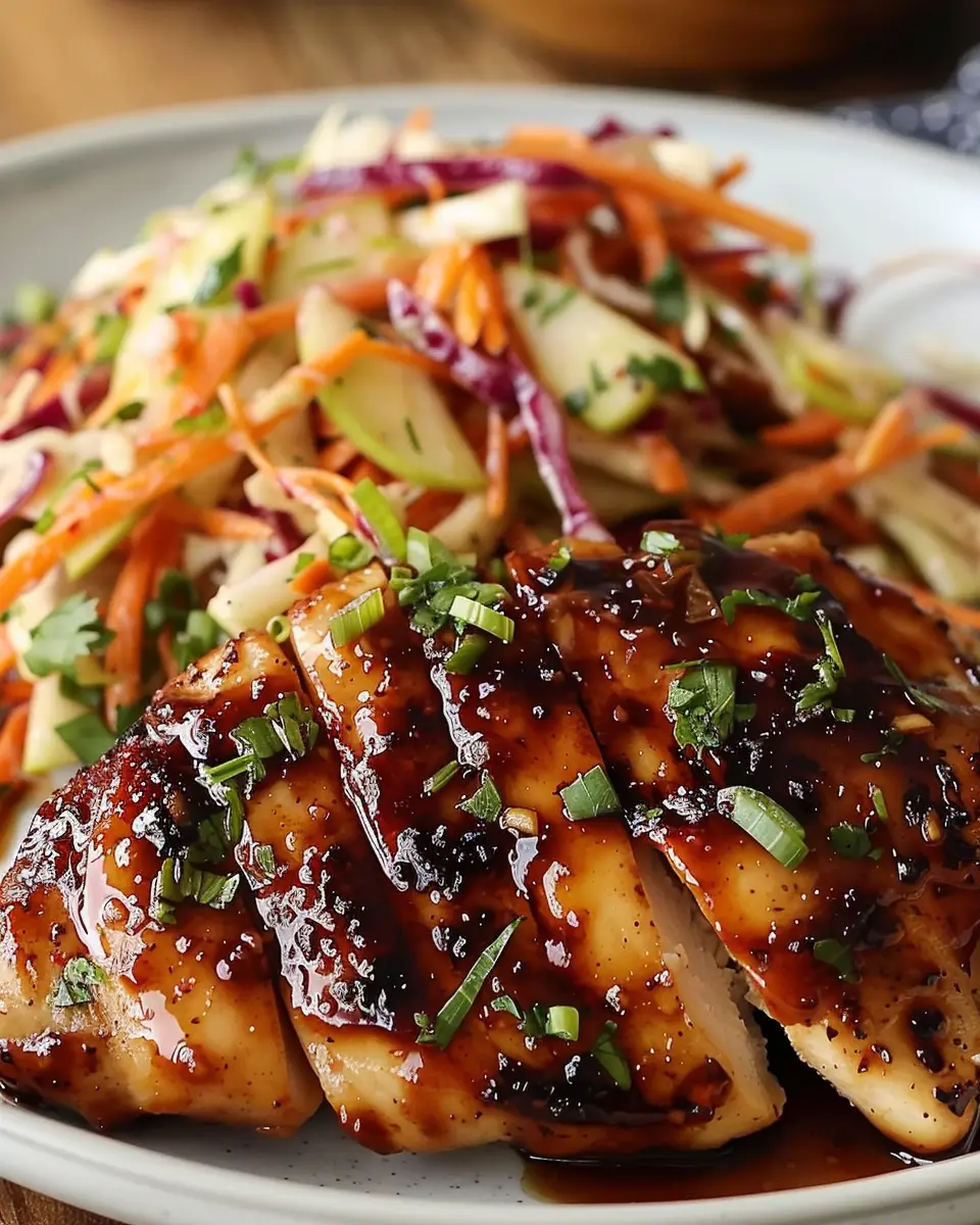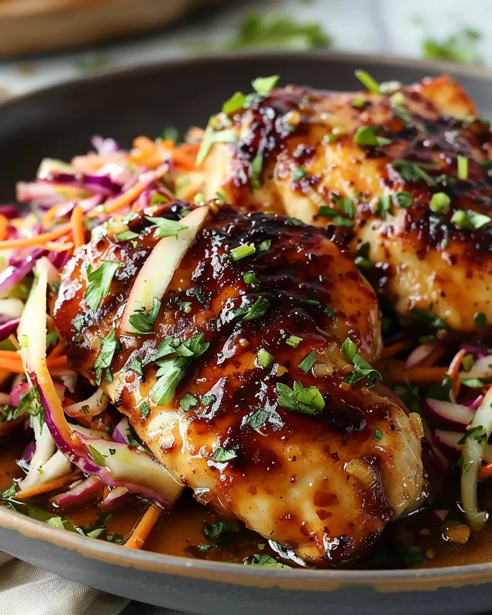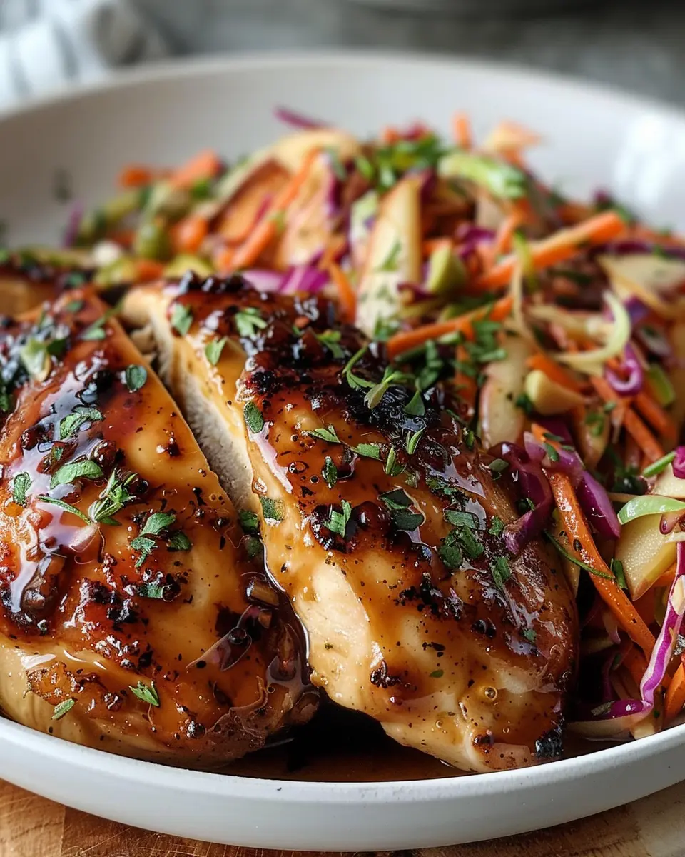 Sticky Apple Cider Chicken with Crisp Autumn Slaw is a delightful dish perfect for autumn dinners.