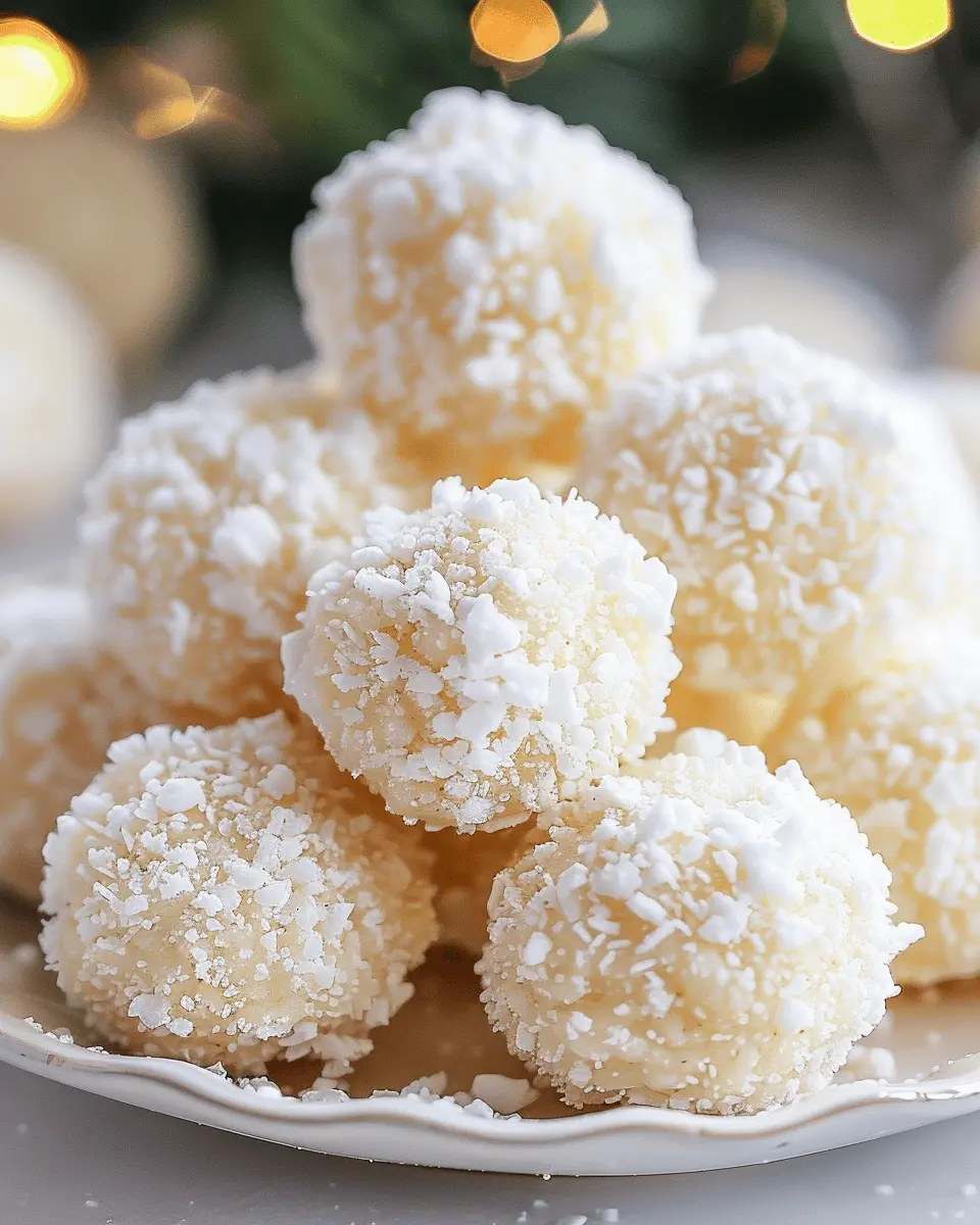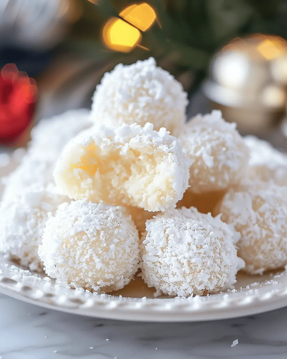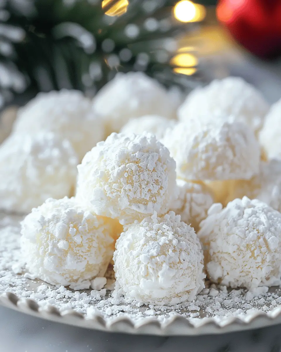 Perfect for Any Occasion: These snowy delights aren’t just limited to dessert tables; they can be served as a festive treat during holidays, or given as gifts in cute jars. Plus, they store well in the fridge, making them a delightful snack whenever you need a little pick-me-up.