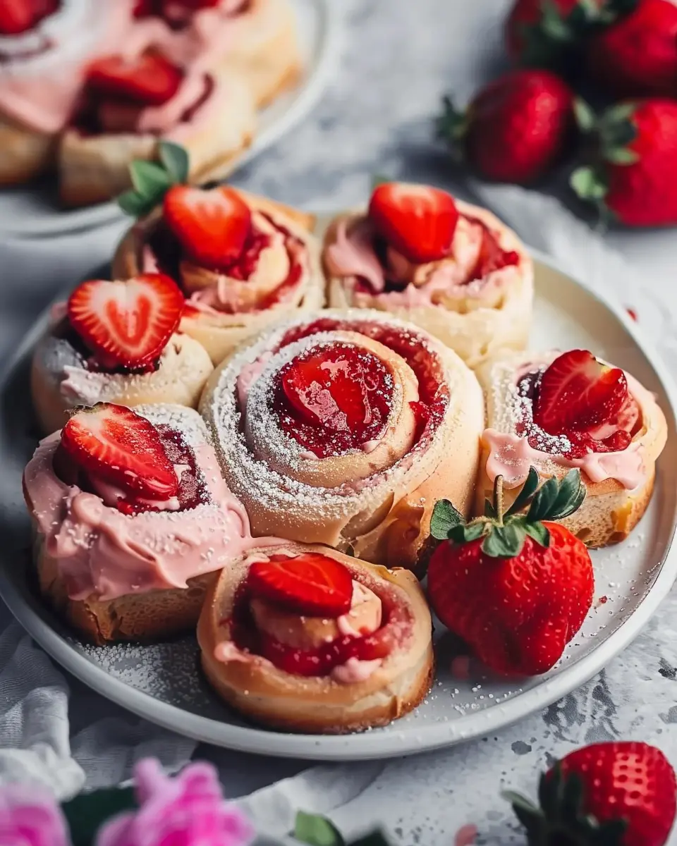 When hosting friends or family, these Vegan Strawberry Sweet Rolls can be a showstopper! Consider arranging them on a decorative platter, garnished with mint leaves for added color and freshness. To elevate the experience, serve them with a side of coconut whipped cream or a tangy citrus glaze. Offering a selection of homemade fruit spreads can add an interactive element to your brunch spread. You could even experiment with a strawberry shortcake twist by layering the rolls with whipped coconut cream and slices of fresh strawberries.